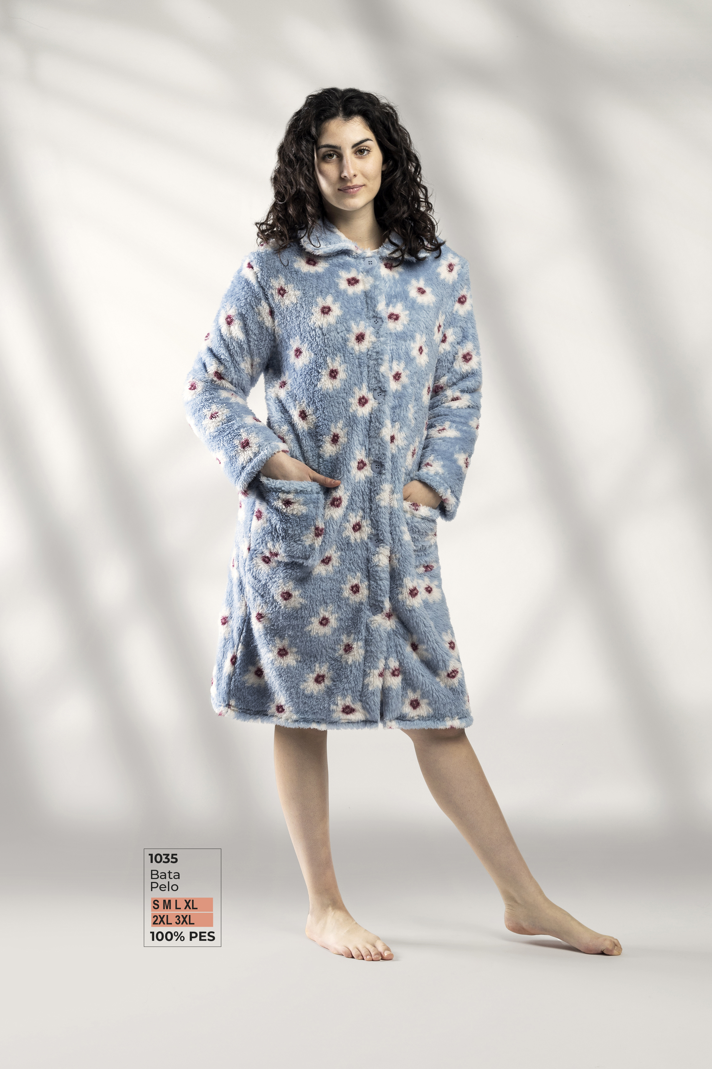 La Bata Mujer Botones Flores LIN es perfecta para el invierno, hecha de pelo suave con un sofisticado estampado de flores. Tiene cierre de botones, cuello solapa y dos bolsillos, confeccionada en 100% poliéster. Es ideal para descansar en casa con estilo y confort, cuidando de su apariencia con un lavado adecuado.