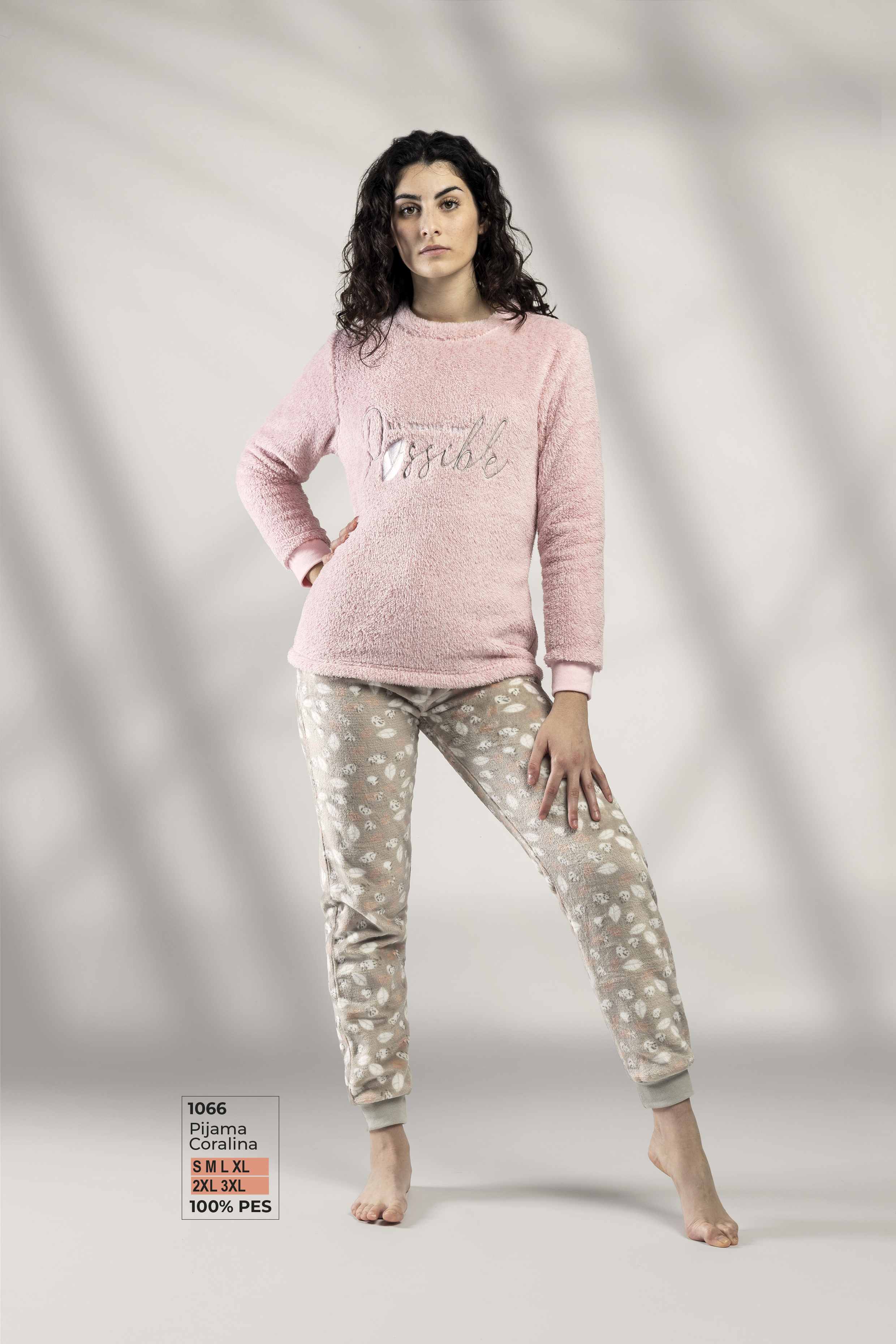 Sumérgete en el confort absoluto con nuestro Pijama Mujer Coralina LIN, diseñado especialmente para ofrecerte el máximo bienestar durante las frías noches de invierno. Este pijama, confeccionado con 100% poliéster, asegura calor y suavidad en cada uso. Con una textura de coralina ultra suave, sentirás la delicadeza de una caricia sobre tu piel.
