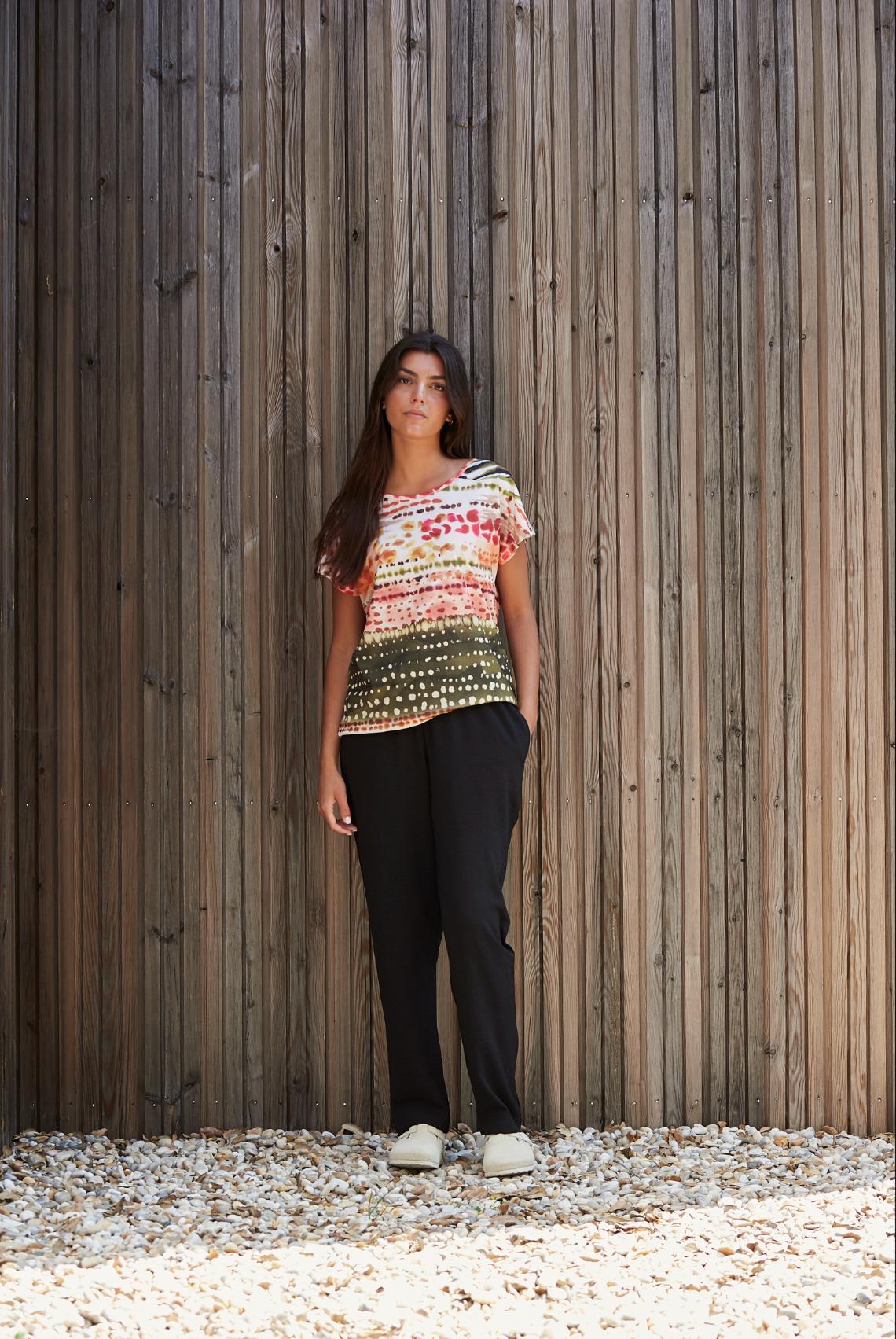 - Diseño: Su estampado vibrante y juvenil es ideal para darle un toque de energía y frescura a tu guardarropa de verano. Cada camiseta es única, reflejando un estilo único y personal.