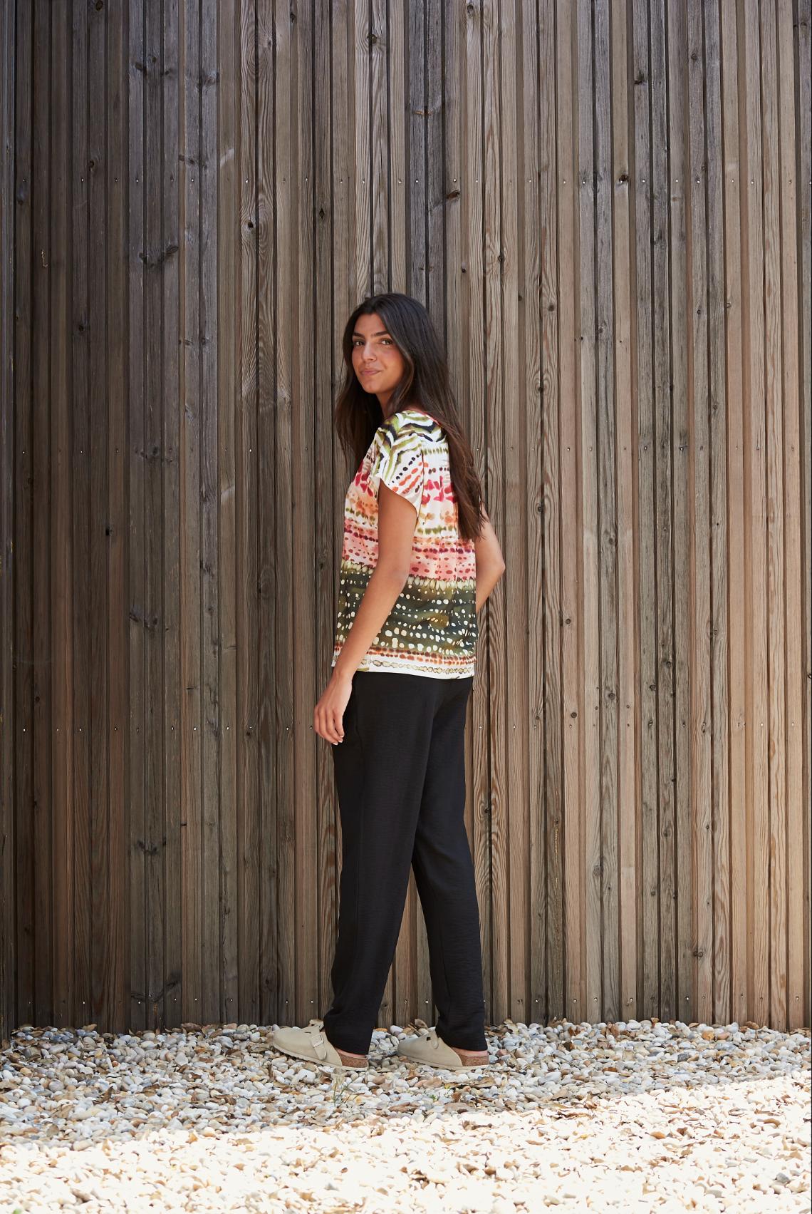 La Camiseta Mujer Manga Corta Estampada BELTY es la opción ideal para cualquier ocasión veraniega. Ya sea una salida casual con amigos, una escapada a la playa o una tarde de verano en la ciudad, esta camiseta se adapta a cualquier situación.