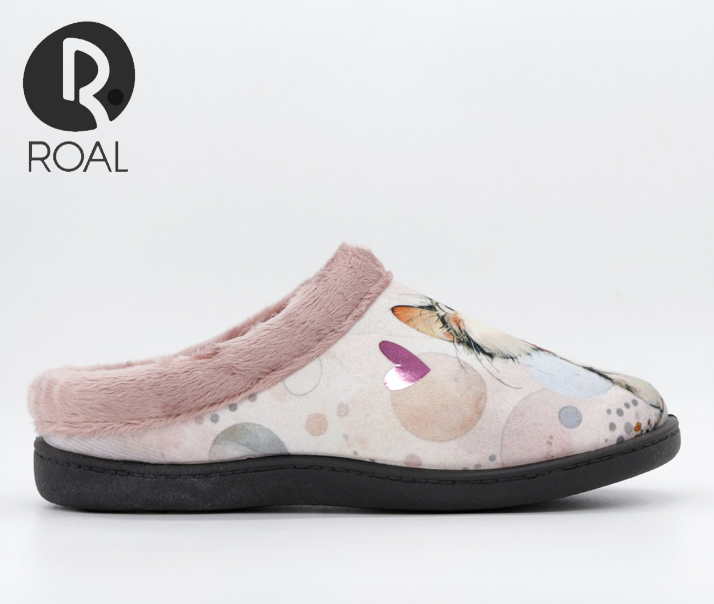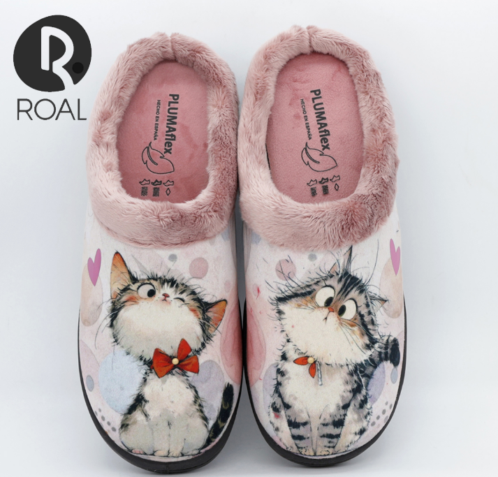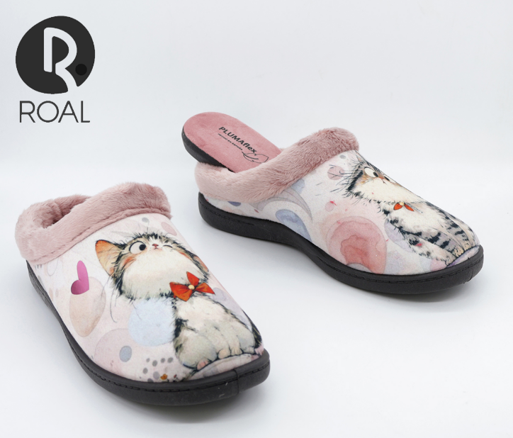 La Zapatilla mujer descalza gatito ROAL es una opción irresistible para quienes buscan combinar diversión y confort en el hogar. Este diseño en forma de zueco, con material exterior de paño liso y un encantador borde peludito, aporta un estilo único y encantador gracias a su alegre estampado de gatitos, lo que la hace ideal para todas las amantes de los felinos. El material interior es de forro polar, proporcionando así una calidez extra en esos días frescos mientras se relaja en casa.
