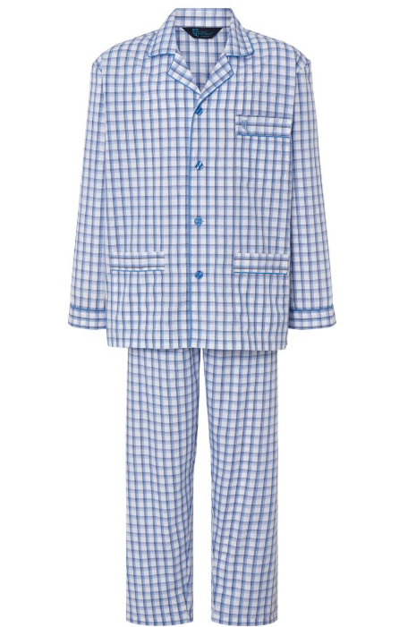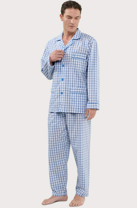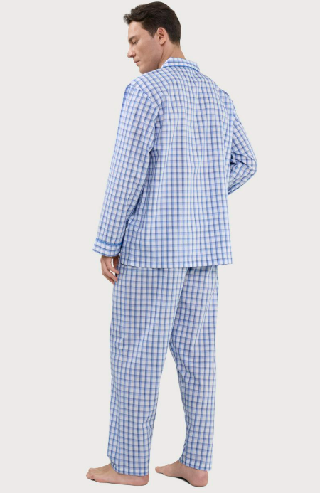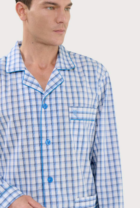 Pijama hombre tela algodón cuadros EL Búho NOCTURNO Azul