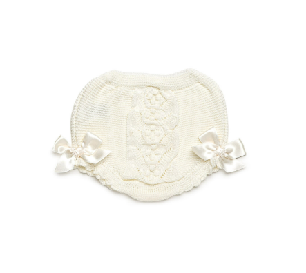 Esta braguita se distingue por sus detalles de bodoques meticulosamente confeccionados, que añaden un toque de sofisticación y dulzura al conjunto. En un encantador tono 'Humanizado', que aporta calidez y ternura al look de su bebé.