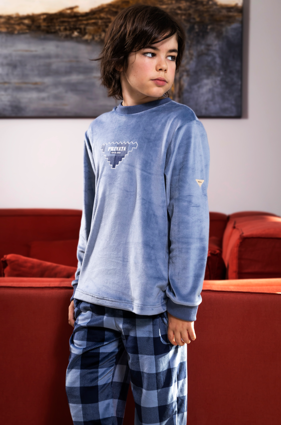 Pijama niño puño pantalón cuadros PRIVATA Azul