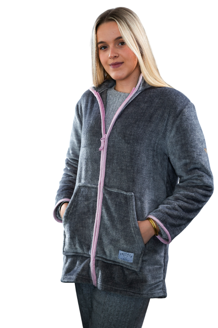Descubra el confort y la elegancia con la bata de mujer con cremallera corta de PRIVATA. Diseñada especialmente para proporcionar calidez durante los fríos meses de invierno, esta bata combina estilo y comodidad de manera excepcional. Con su cremallera corta, ofrece un ajuste fácil y rápido, ideal para su uso diario. Los dos bolsillos frontales son perfectos para llevar pequeños objetos personales o mantener las manos calientes.