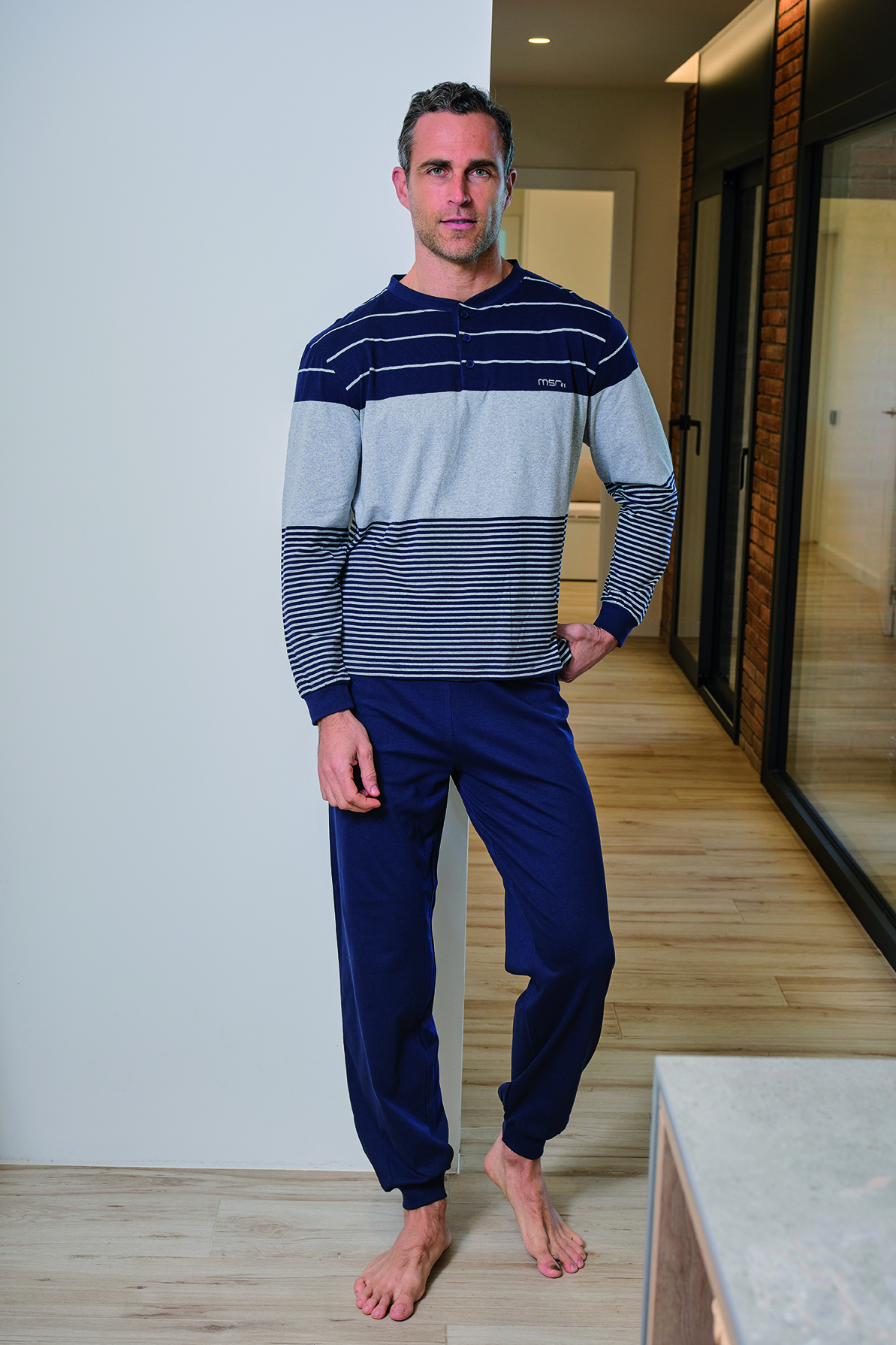 El pijama hombre puño tapeta Mushler ofrece comodidad ideal para el invierno con un diseño sofisticado. La camiseta, con su lista y tapeta de 2 botones hasta el pecho, combina estilo y funcionalidad. El pantalón liso completa el conjunto con elegancia. Elaborado con tela de punto, garantiza calidez y transpirabilidad. Los puños aseguran un ajuste cómodo, evitando corrientes de aire frío. Ideal para cualquier época del año, este pijama será su aliado perfecto para el descanso diario.