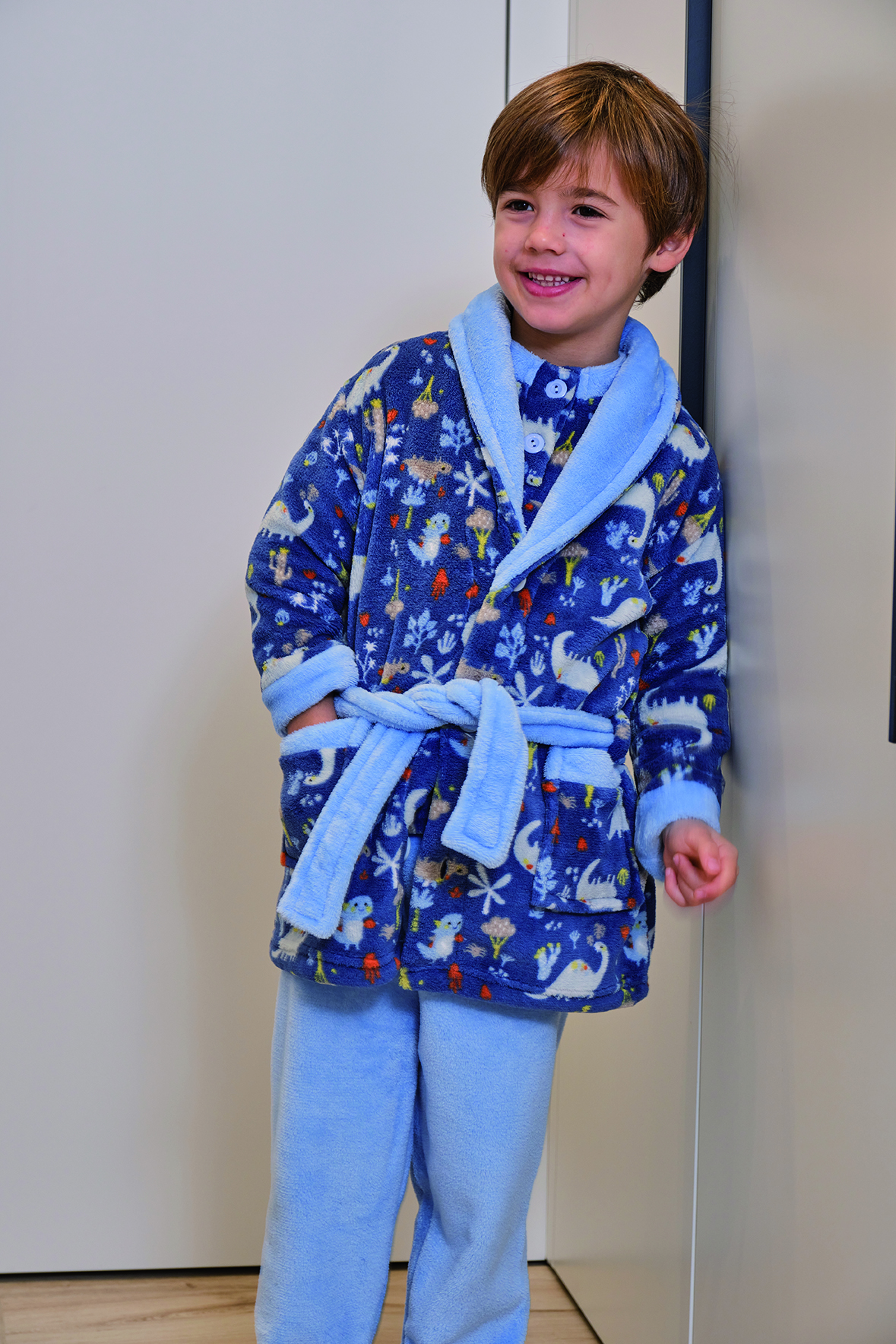 Bata infantil niño botones dinosaurio Mushler Azul claro
