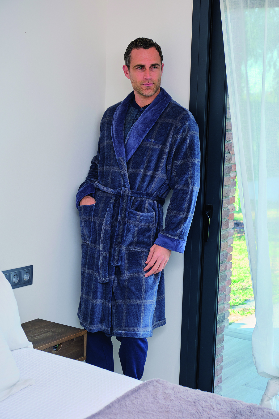 Bata hombre coralina cuadros Mushler Azul/Gris