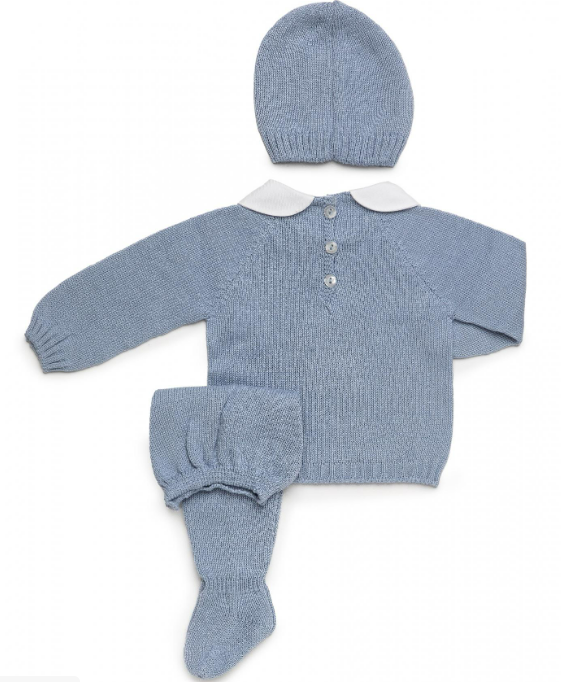 El Conjunto Bebé Tres Piezas Verano Globo Juliana es ideal para el estilo y confort de tu bebé en verano. Incluye un jersey azul de manga larga con diseño de globo, polaina azul, y un gorrito a juego. El jersey cuenta con un cierre de botonadura en la espalda para facilitar el vestirse. Confeccionado con materiales de alta calidad, es perfecto para cualquier ocasión, manteniendo a tu bebé a la moda y cómodo. Para su cuidado, se recomienda lavado a máquina con agua fría y secado al aire libre.