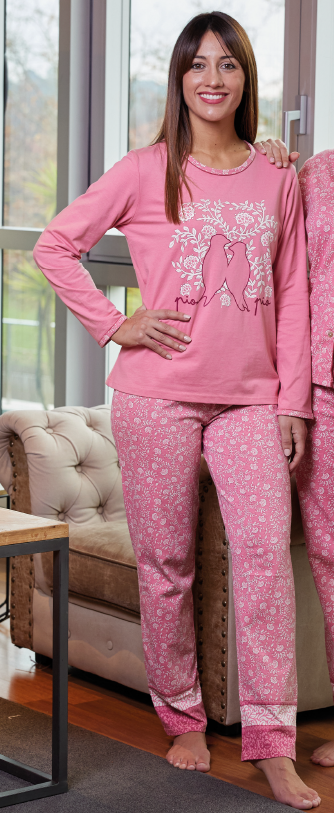 Descubre el confort y la calidez del pijama mujer pájaros PIJAMAS CUE, ideal para las noches frías del invierno. Este encantador conjunto de pijama está diseñado pensando en tu comodidad y estilo, presentando una camiseta de manga larga con un atractivo diseño de dos pájaros que le aporta un toque alegre y original a tus momentos de descanso.