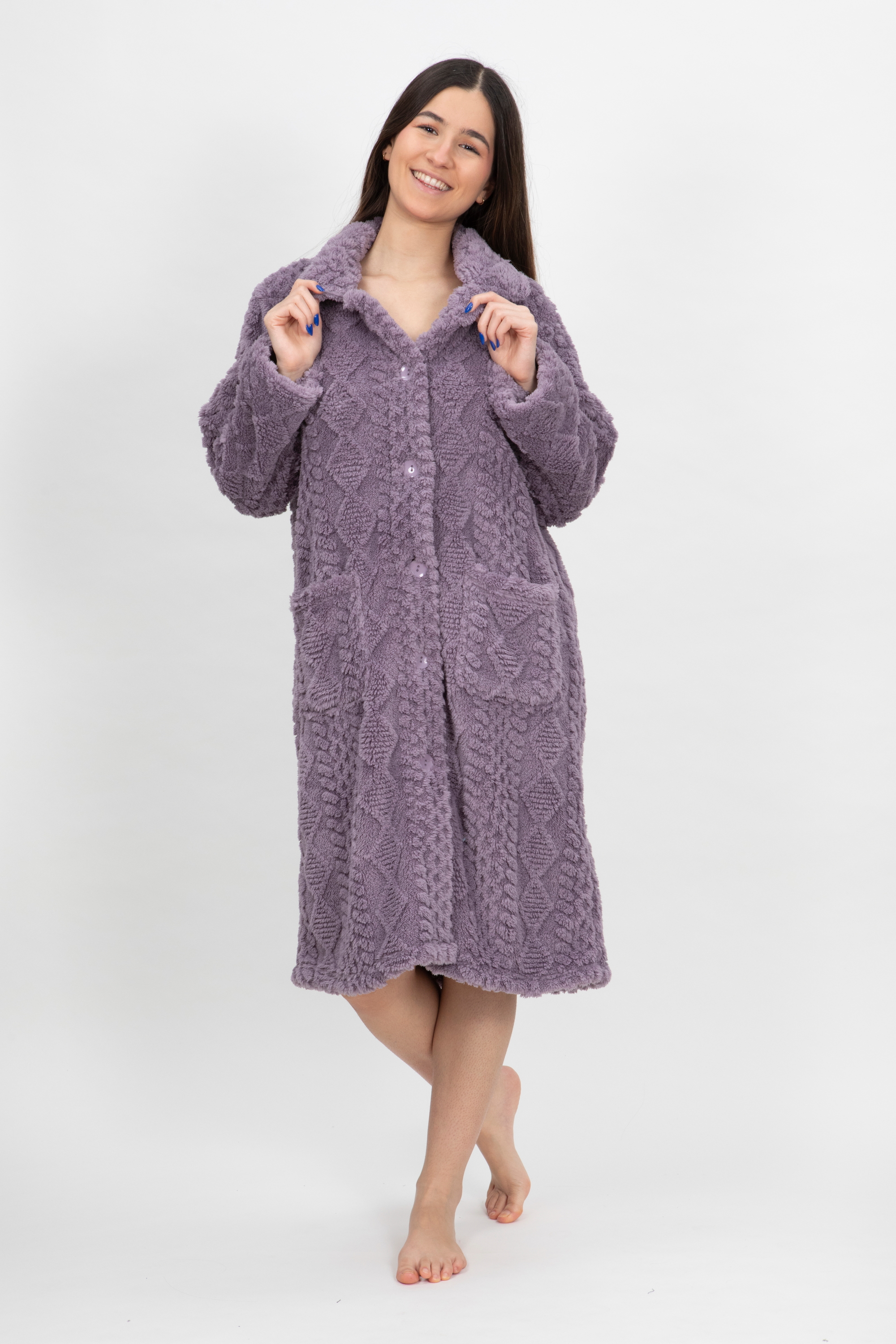 Una de las características más destacadas de esta bata es su cierre con botones, que permite un ajuste personalizado y facilidad al ponérsela y quitársela. Este diseño práctico no solo asegura comodidad, sino que también añade un toque de estilo clásico que nunca pasa de moda.
