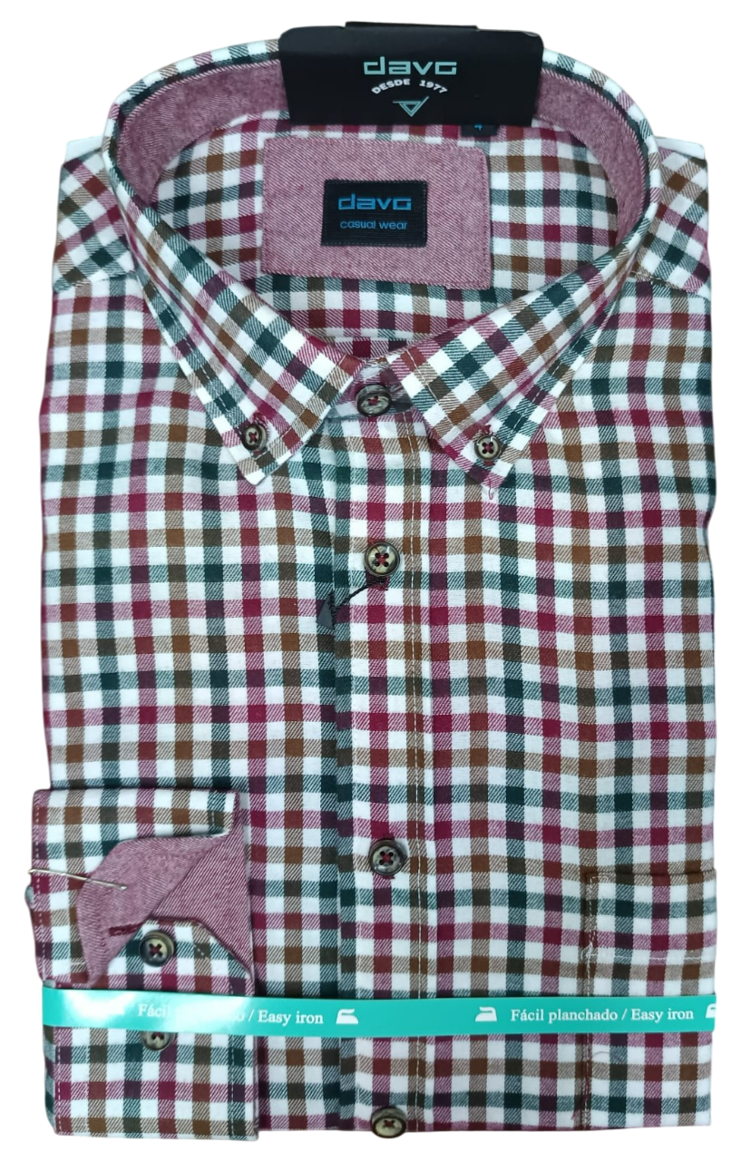 La Camisa Hombre Viella Cuadros DAVÓ combina elegancia y comodidad, perfecta para cualquier ocasión. Confeccionada en viella de calidad, presenta cuadros en tonos crudo, verde, tostado y grosella. Destaca por su bolsillo en el pecho, pliegue en la espalda para un ajuste óptimo, y reverso de mangas en grosella. Hecha de 65% poliéster y 35% algodón, es fácil de mantener: lavar a 30°, planchado fácil, y adecuada para secadora a baja temperatura. Evita la lejía y opta por lavado en seco cuando sea necesario. Esta camisa ofrece un estilo clásico y adaptable, ideal para toda ocasión.