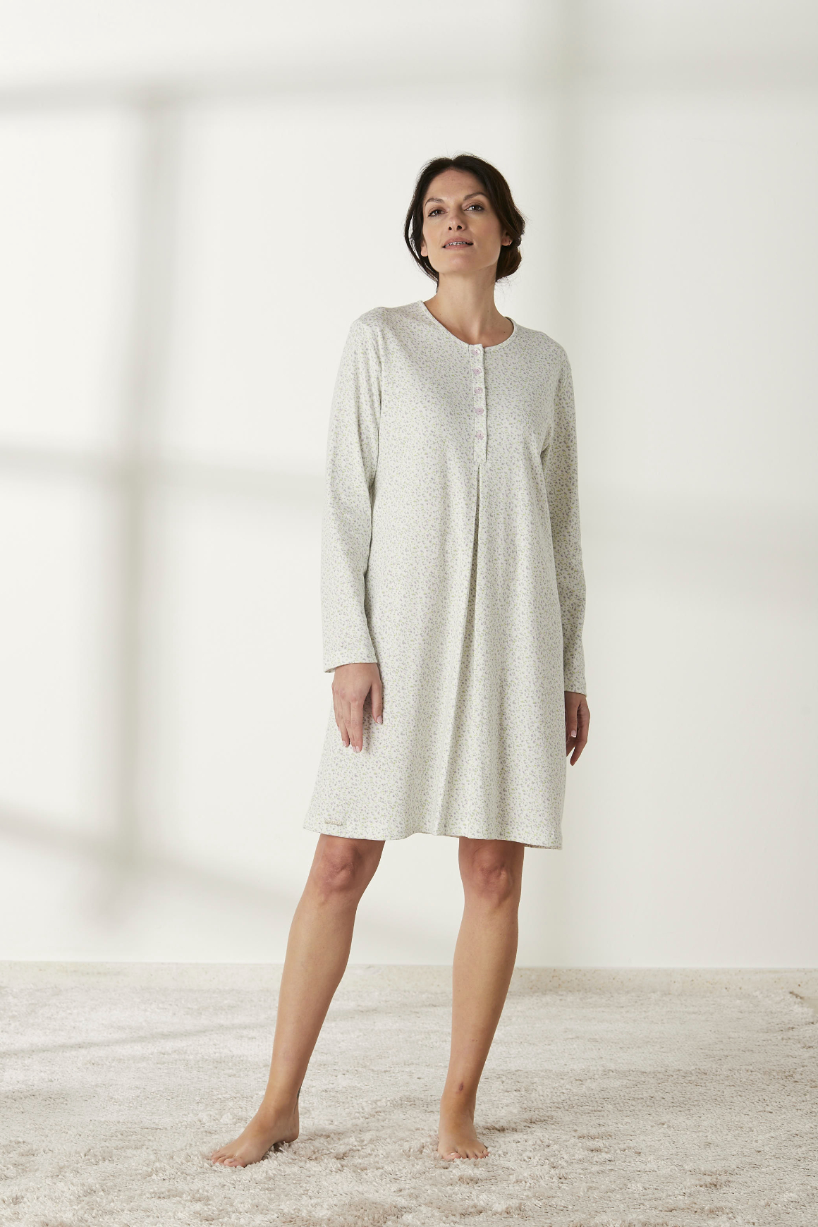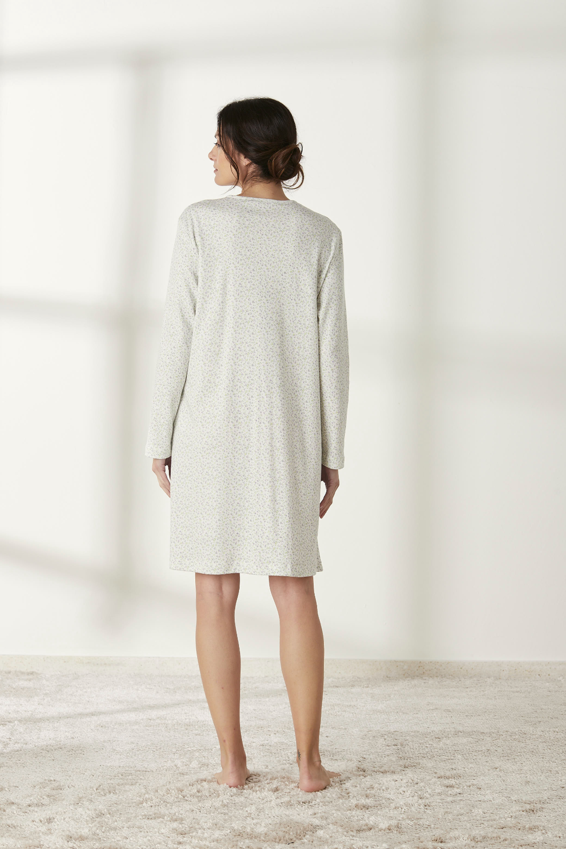 Confeccionado en algodón de alta calidad, este camisón es suave al tacto e ideal para pieles sensibles. Presenta un diseño de manga larga que proporciona calidez mientras dormitas o te relajas en casa. Además, su cuello redondo añade un toque elegante y clásico al mismo tiempo.