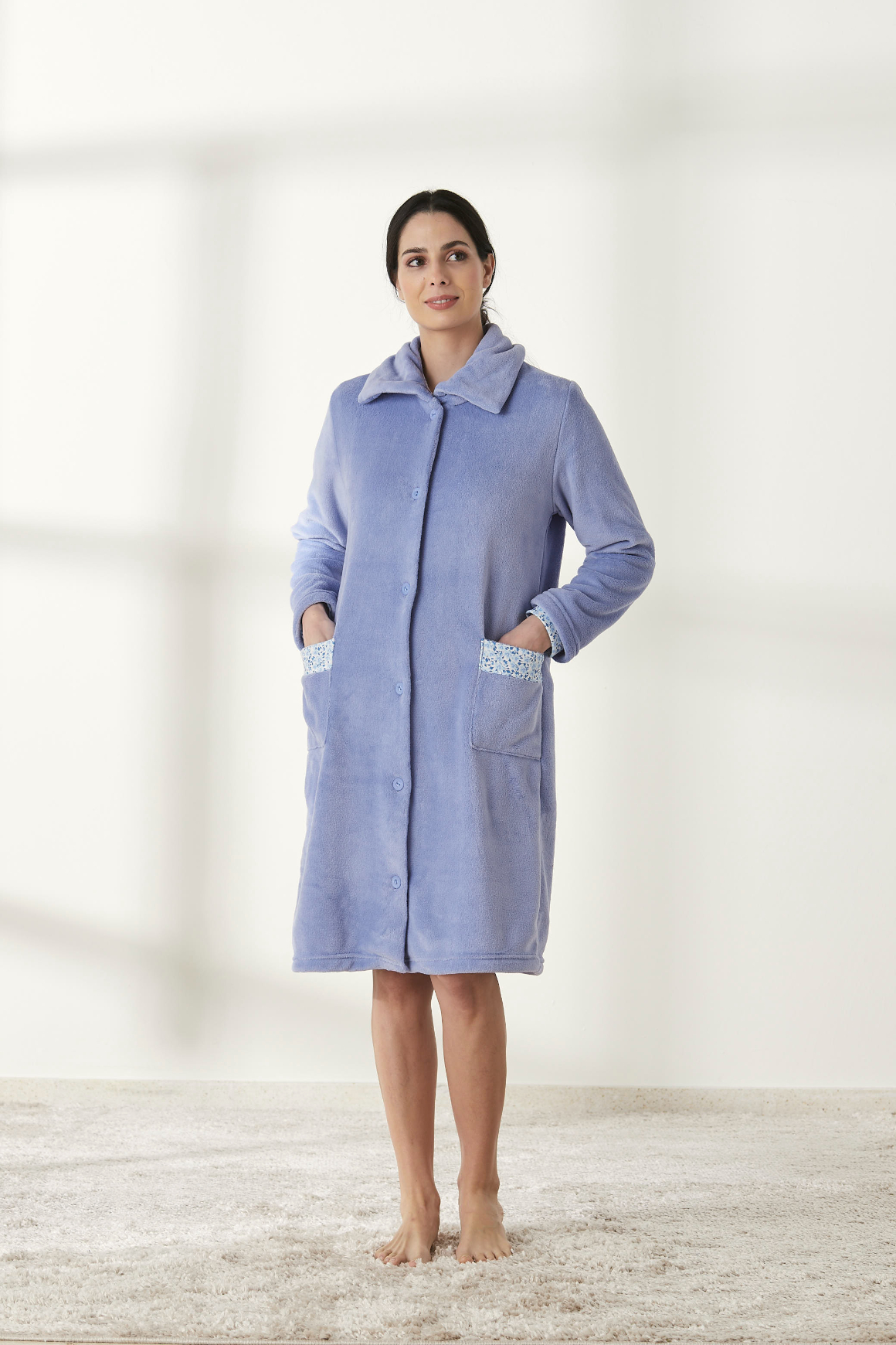 La Bata Mujer Botones con Cuello BELTY es ideal para el invierno, combinando confort y estilo. Con un cierre de botones, un elegante cuello solapa, y dos bolsillos prácticos, esta bata ofrece funcionalidad y calidez. Su tejido suave es perfecto para mantener el calor, mientras que su diseño clásico añade un toque de sofisticación a cualquier atuendo de descanso. Es la elección perfecta para relajarse cómodamente durante la temporada fría.
