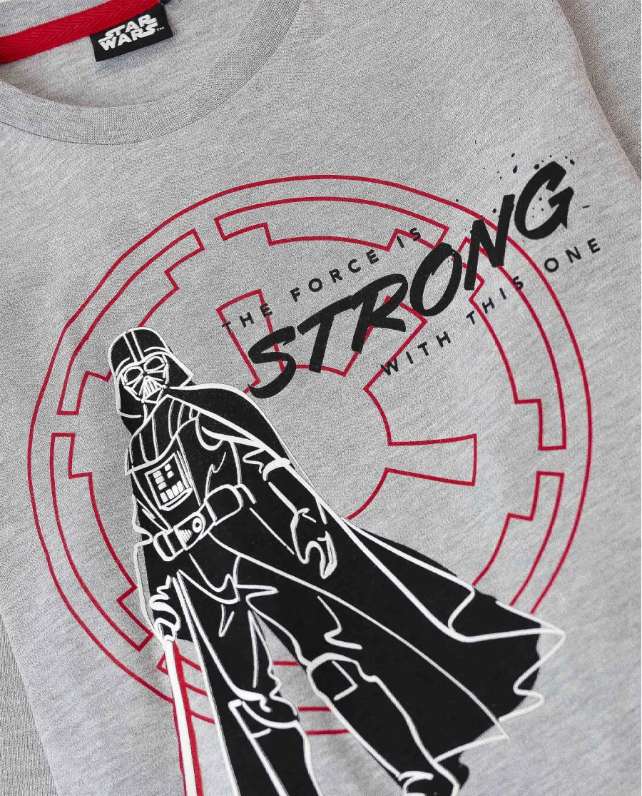 - Camiseta de punto interlock: En color gris jaspe, con detalles en relieve que destaca un diseño personalizado de Star Wars.