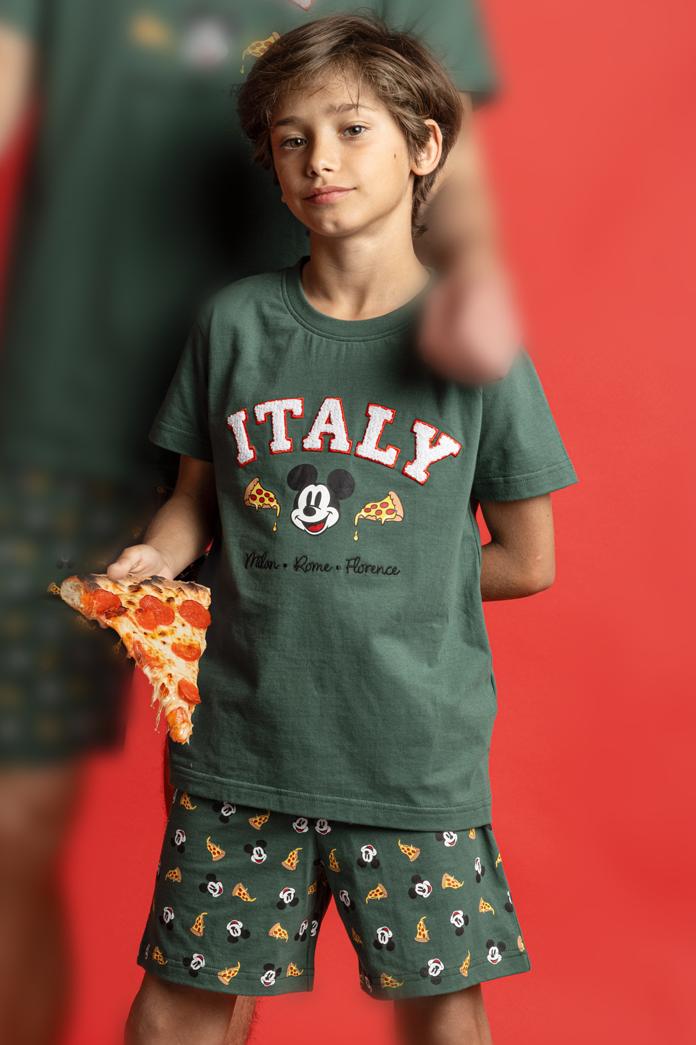 Pijama niño corto algodón mickey Aznar Innova Verde trébol