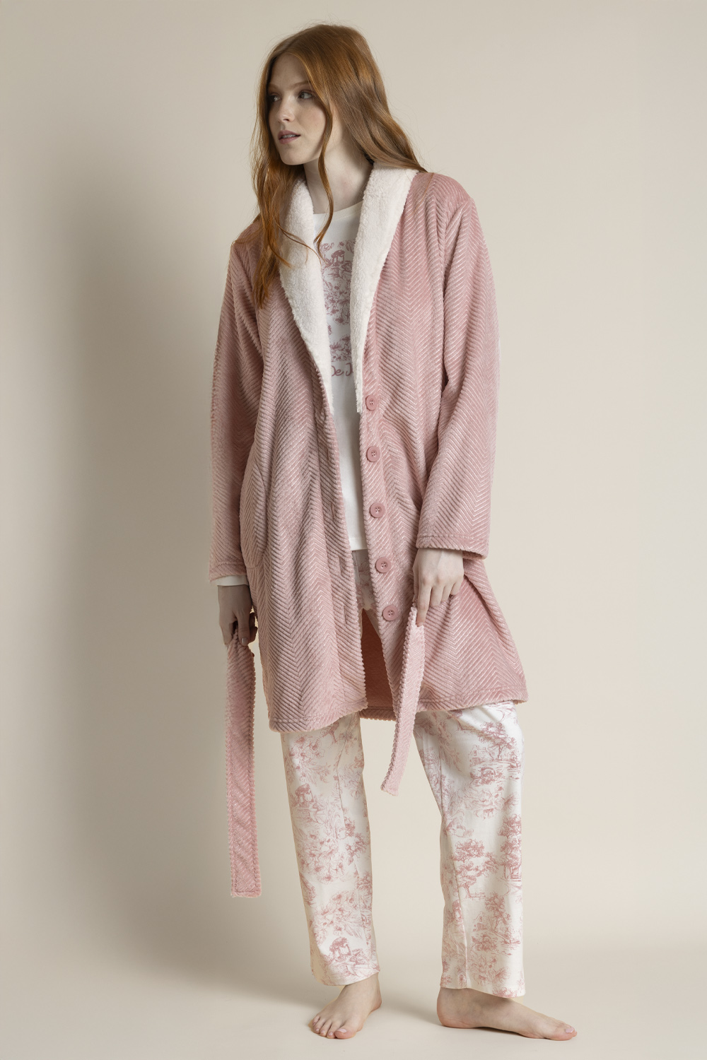 Descubre la bata mujer corta con botones de Aznar Innova, una prenda especialmente diseñada para ofrecerte la máxima comodidad y estilo durante el invierno. Confeccionada en un tejido polar que garantiza un calor excepcional y un corel jacquard que añade un toque de elegancia, esta bata de manga larga se presenta en tres combinaciones de colores: maquillaje, azul y verde hoja.