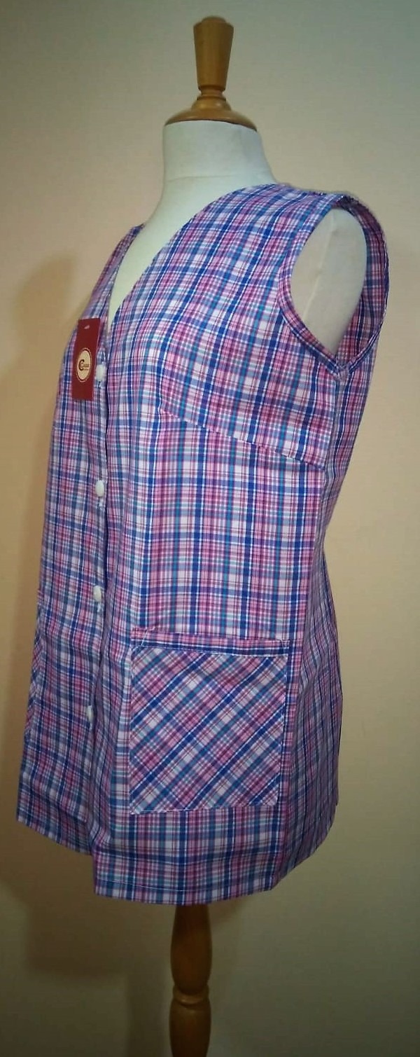 Mandilón clásico mujer de sisa con botones y bolsillos. Cuadros. GASPAR
