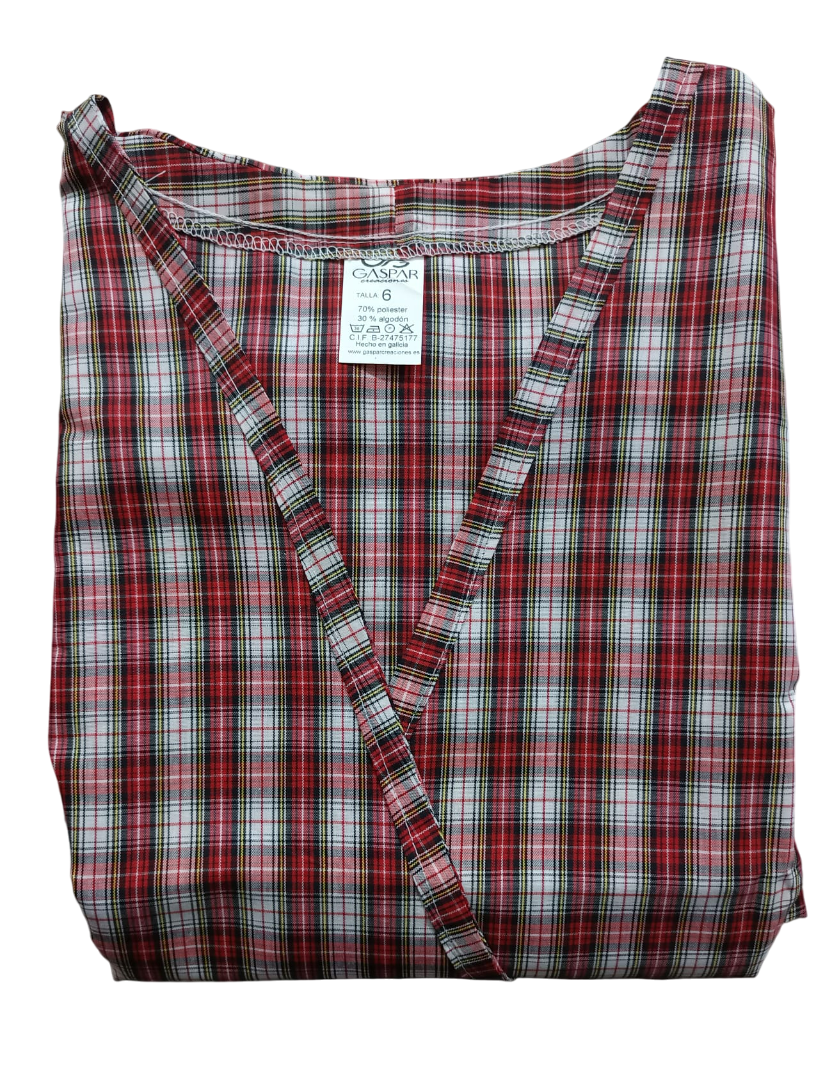Con colores vivos o más tradiciones, y un diseño de cuadros clásico, el mandilón es más que ropa de hogar; es una declaración de elegancia casual y confort. El cuello en forma de pico y las sisas ribeteadas realzan la figura sin sacrificar la comodidad. Concebido para adaptarse a cualquier tipo de cuerpo, cada mandilón es una expresión personal de estilo y tradición.