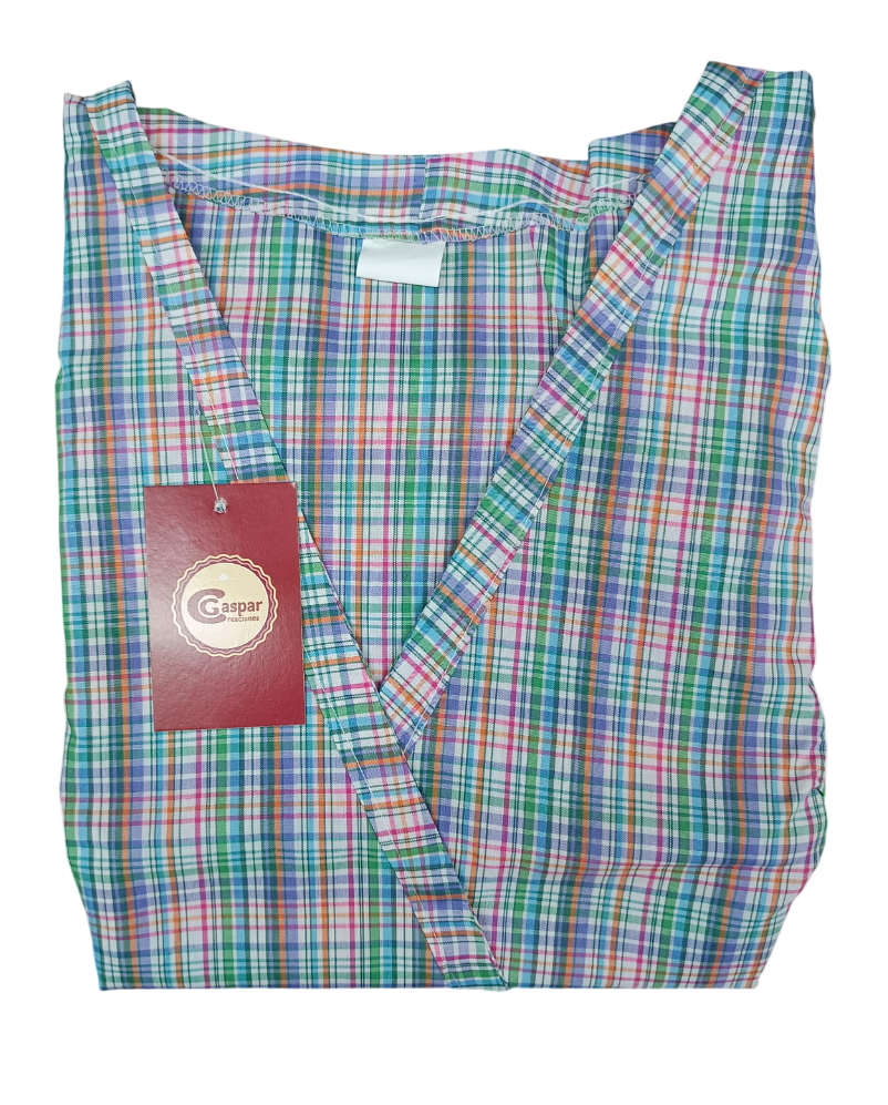 Con colores vivos o más tradiciones, y un diseño de cuadros clásico, el mandilón es más que ropa de hogar; es una declaración de elegancia casual y confort. El cuello en forma de pico y las sisas ribeteadas realzan la figura sin sacrificar la comodidad. Concebido para adaptarse a cualquier tipo de cuerpo, cada mandilón es una expresión personal de estilo y tradición.