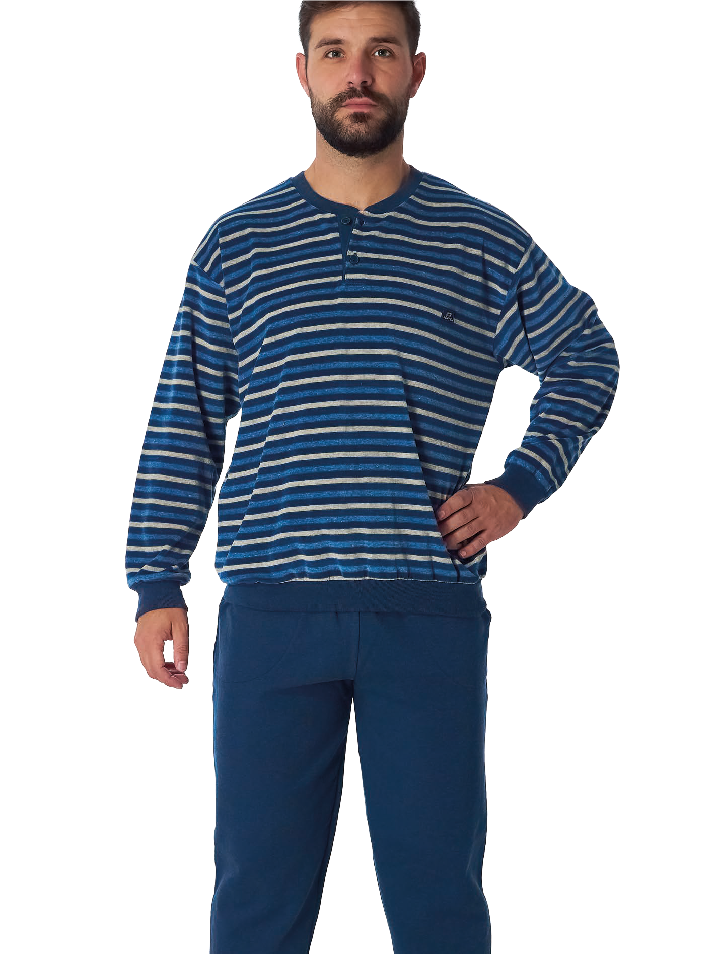 Cuando la comodidad y el estilo se encuentran, el resultado es el Pijama Hombre Tapeta Puño Listas DORMEN. Diseñado especialmente para ofrecer calidez y confort durante los meses más fríos, este pijama es una pieza esencial en el guardarropa de invierno de cualquier hombre.