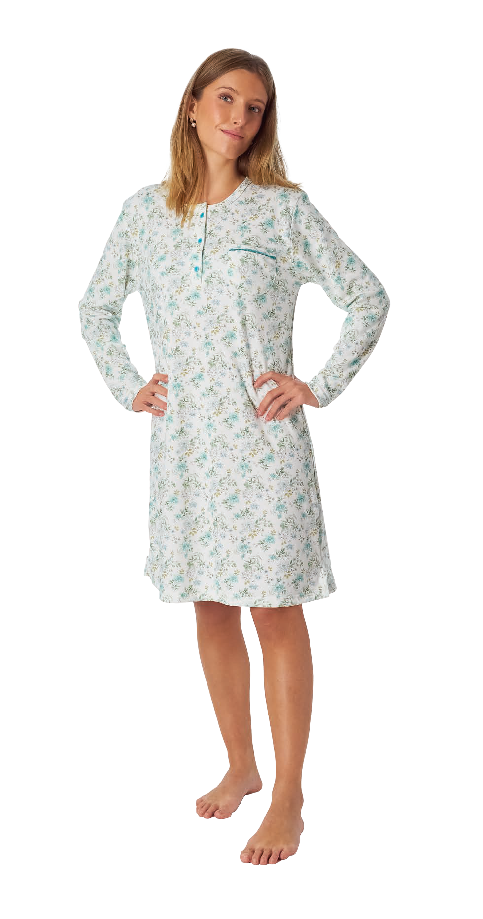 Camisón mujer manga larga algodón LENISS Turquesa