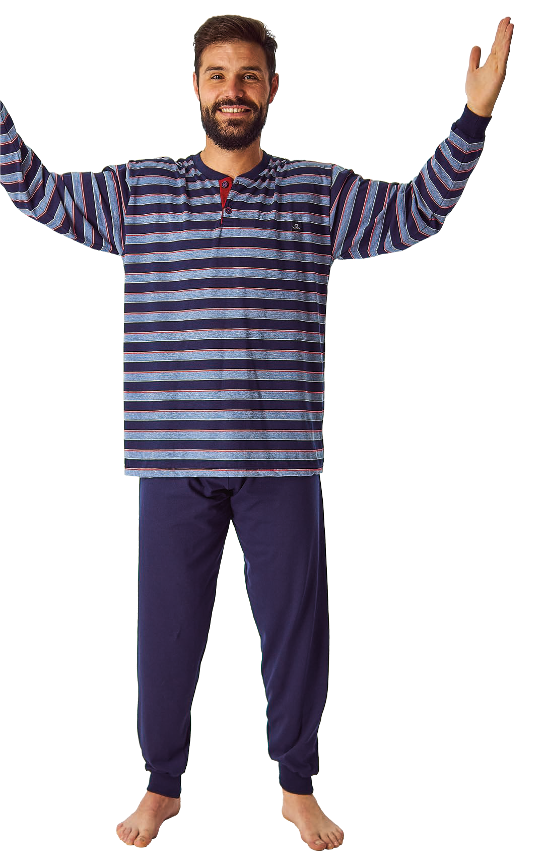 Pijama hombre largo verano listas DORMEN Marino