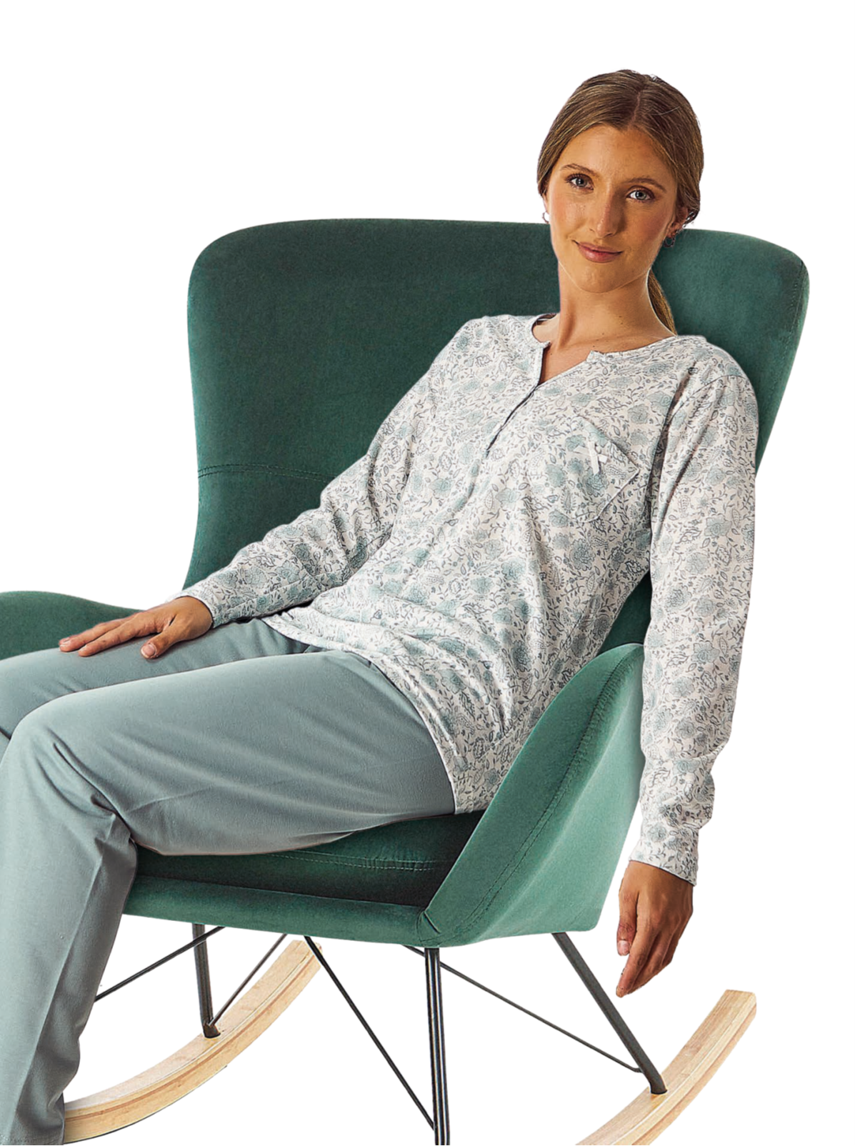 Pijama verano tapeta flores LENISS Verde agua